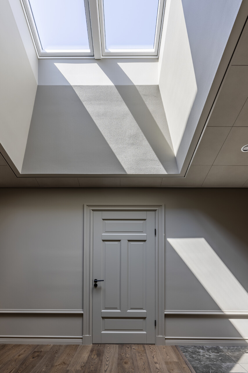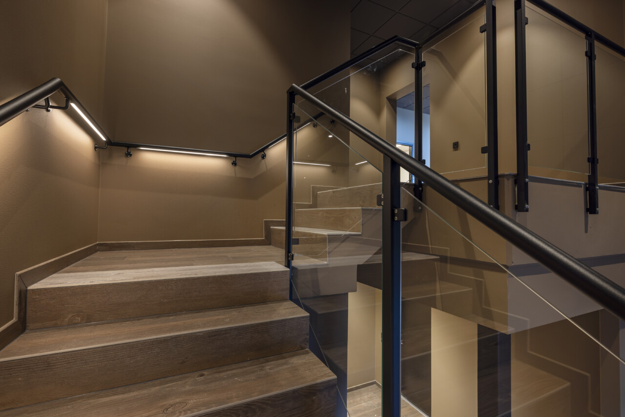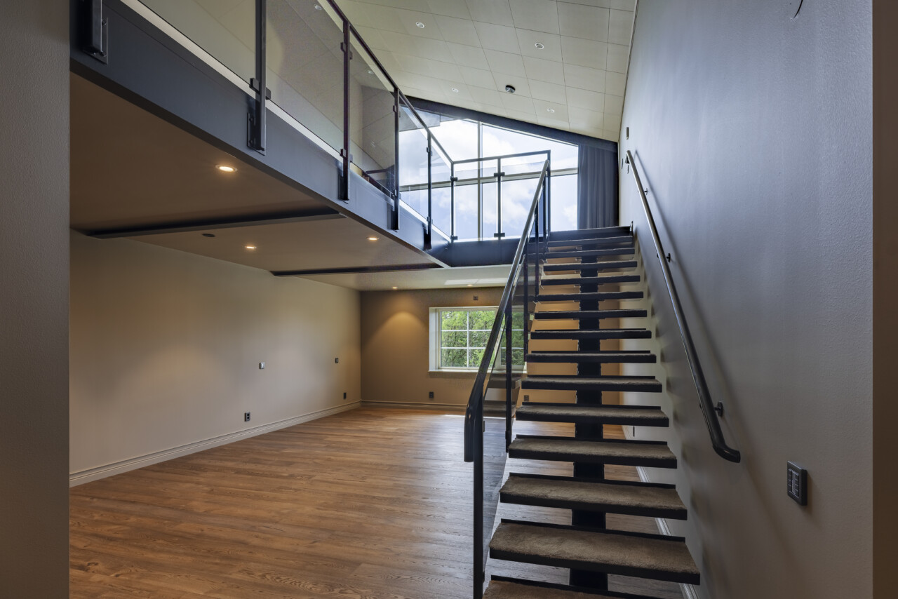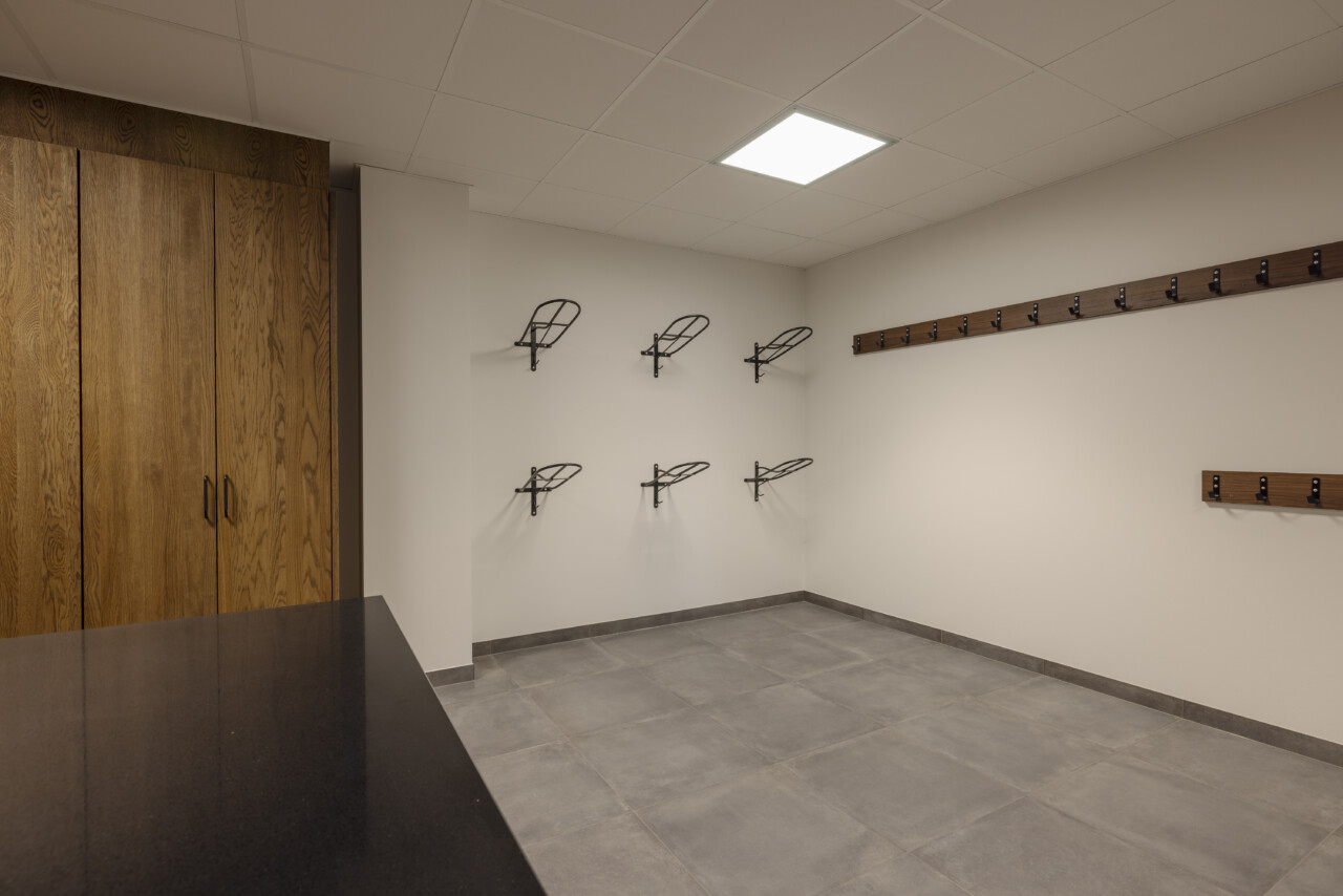 I mittskeppet finns en del för personal med service och avsedda utrymmen, även entré till JSM som har kontorsutrymmen och bostadsdel på plan 2.