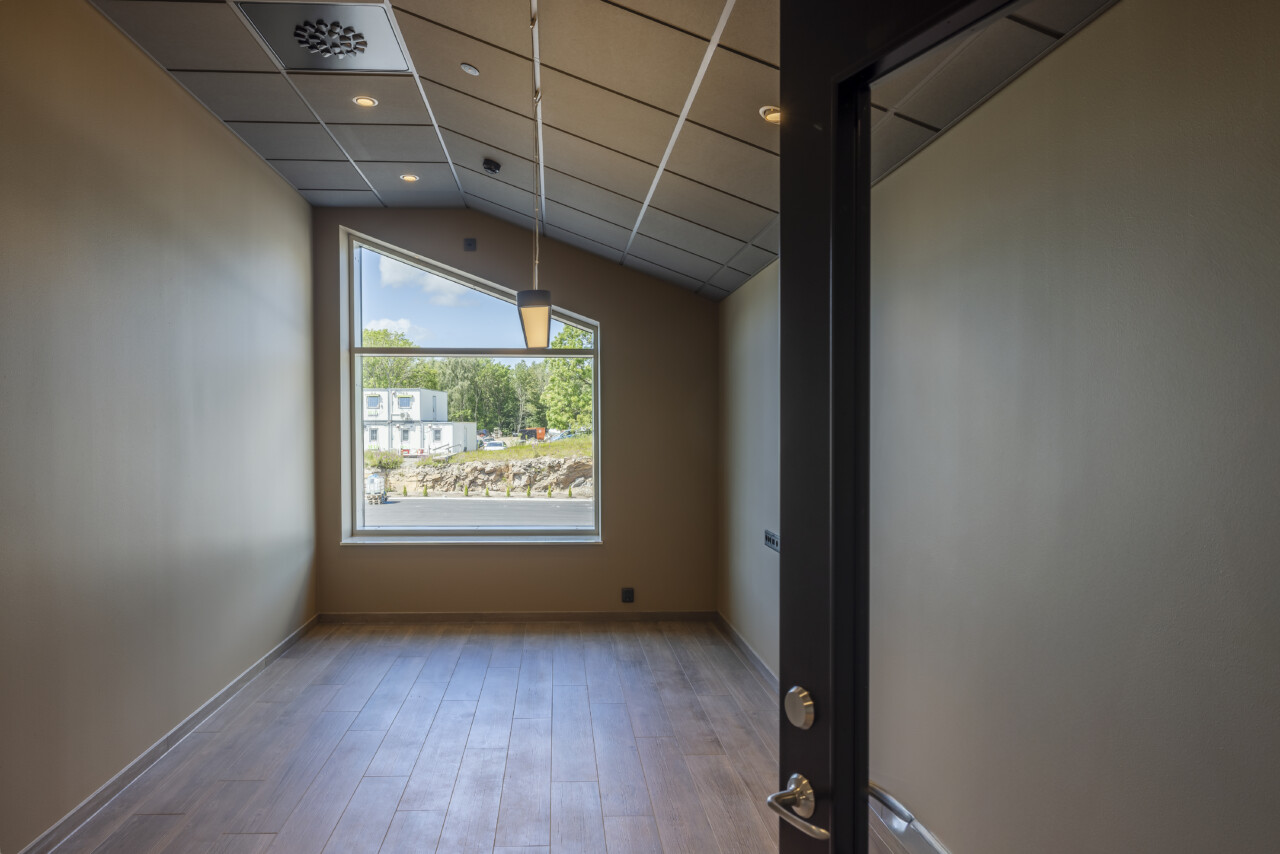 Total yta på byggnaden är ca 4500 kvm i markplan + 1500 kvm mellanbjälklag. I söder har solcellsanläggning monterats på taket med installerad effekt på 400 kW.